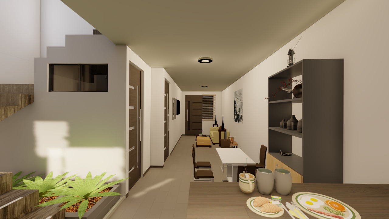 – 1 piso: Sala garaje, cocina, comedor, baño, patio de ropas