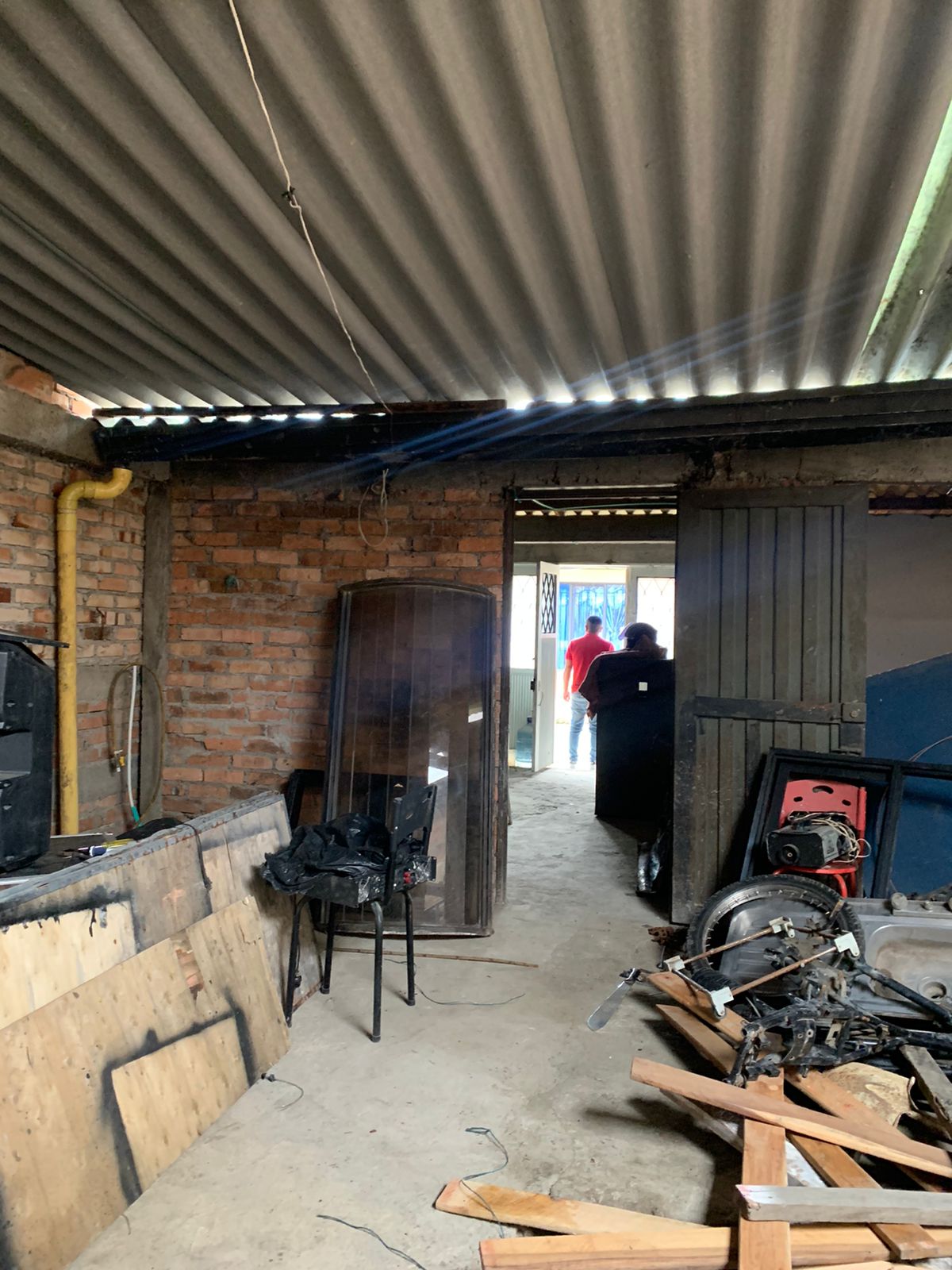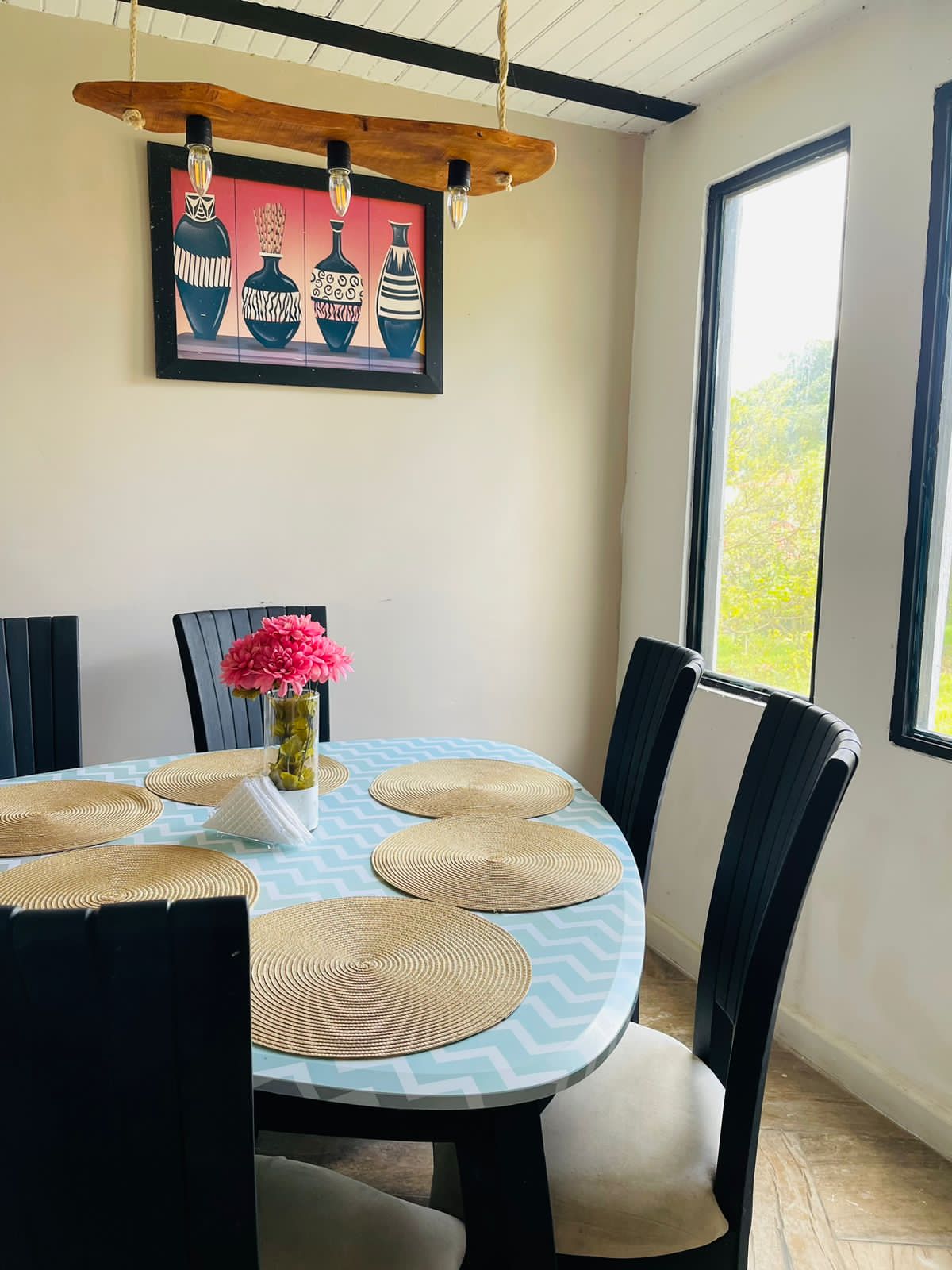 3 habitaciones, 2 baños, sala comedor, patio corral de gallinas.